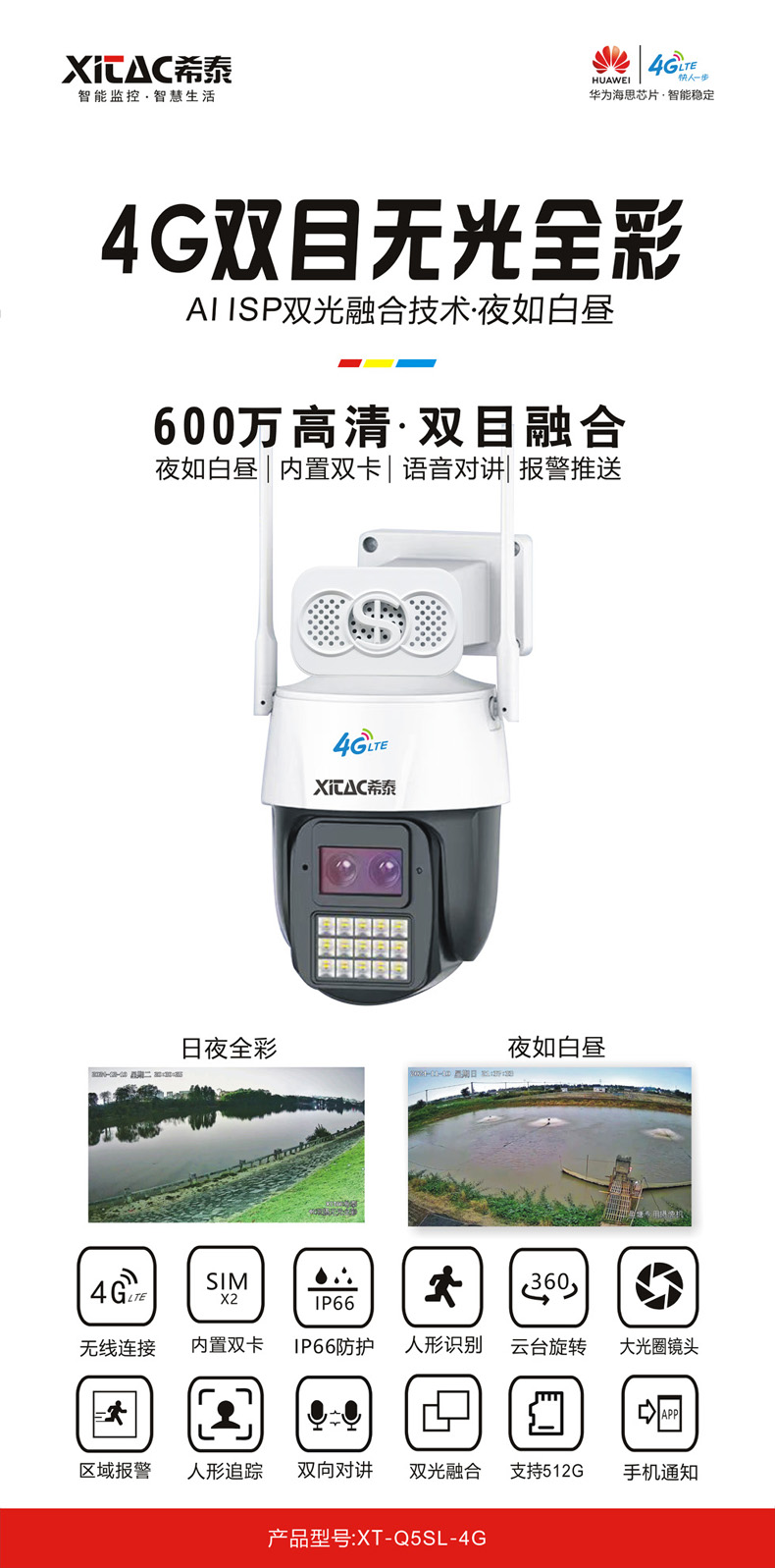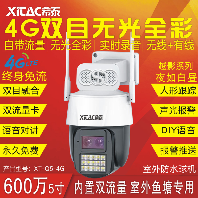 XT-Q5SL-4G 5寸600万4G永久免流无线插卡球机